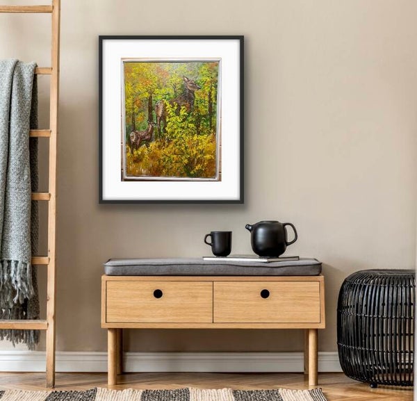 16x20 Framed canvas. Elk and baby walking through New Mexico Mountains. Original painting from a portrait.